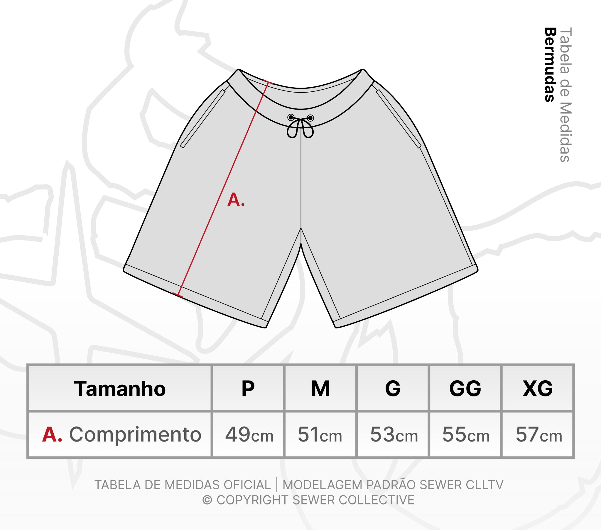 • Bermuda moletom 50% algodão 330g e 50% poliéster;